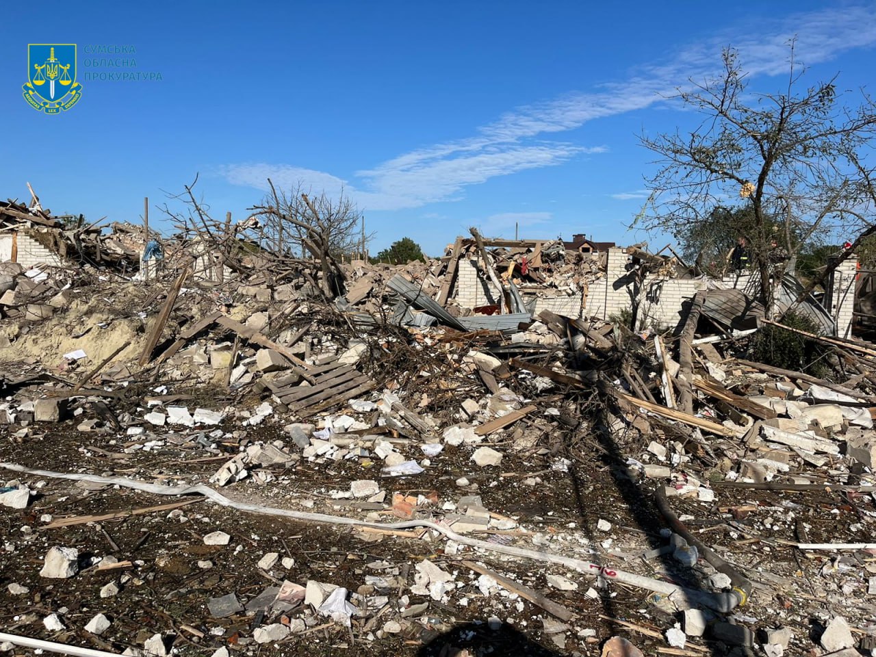 8 вересня в м. Суми зранку сталося влучання ворожої ракети. Внаслідок удару зруйновано двоповерховий житловий будинок, пошкоджень зазнали більше 20 осель та 8 транспортних засобів, виникла пожежа на значній площі. Людям надається вся необхідна допомога. Під уламками знаходились дві людини. З-під завалів надзвичайники врятували чоловіка (1953 р.н) та жінку (померла в лікарні) (1958 р.н).