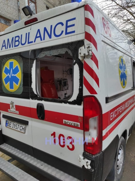 8 лютого 2024 року російські війська завдали ударів попередньо безпілотником «Ланцет», внаслідок чого пошкоджено автомобіль швидкої медичної допомоги. За інформацією головного лікаря КМП «Миколаївський обласний центр екстреної медичної допомоги та медицини катастроф» Миколаївської обласної ради Андрія Самойлова, автомобіль швидкої медичної допомоги потрапив під російський обстріл у м. Очакові. За інформацією головного лікаря, бригада «швидкої допомоги» поверталася з виклику: у салоні був пацієнт, якого везли до лікарні, коли поряд вибухнув російський дрон. Внаслідок вибуху поранення отримали два члени бригади швидкої: лікарю осколками скла посікло обличчя, ще одна людина отримала контузію. Хворий, якого везли на госпіталізацію, не постраждав.