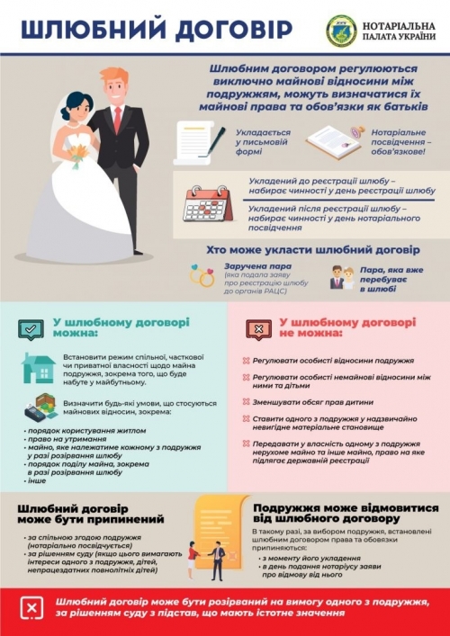Інститут шлюбного договору вже давно існує у світовій практиці. В Україні він відносно новий, з’явився тільки у 1992 році з внесенням доповнень до Кодексу про шлюб та сім’ю. Ставлення до нього у нашому суспільстві контроверсійне: одні вважають образливим укладення подібного договору, тоді як інші наполягають його укласти, щоб максимально деталізувати шляхи вирішення спірних ситуацій.