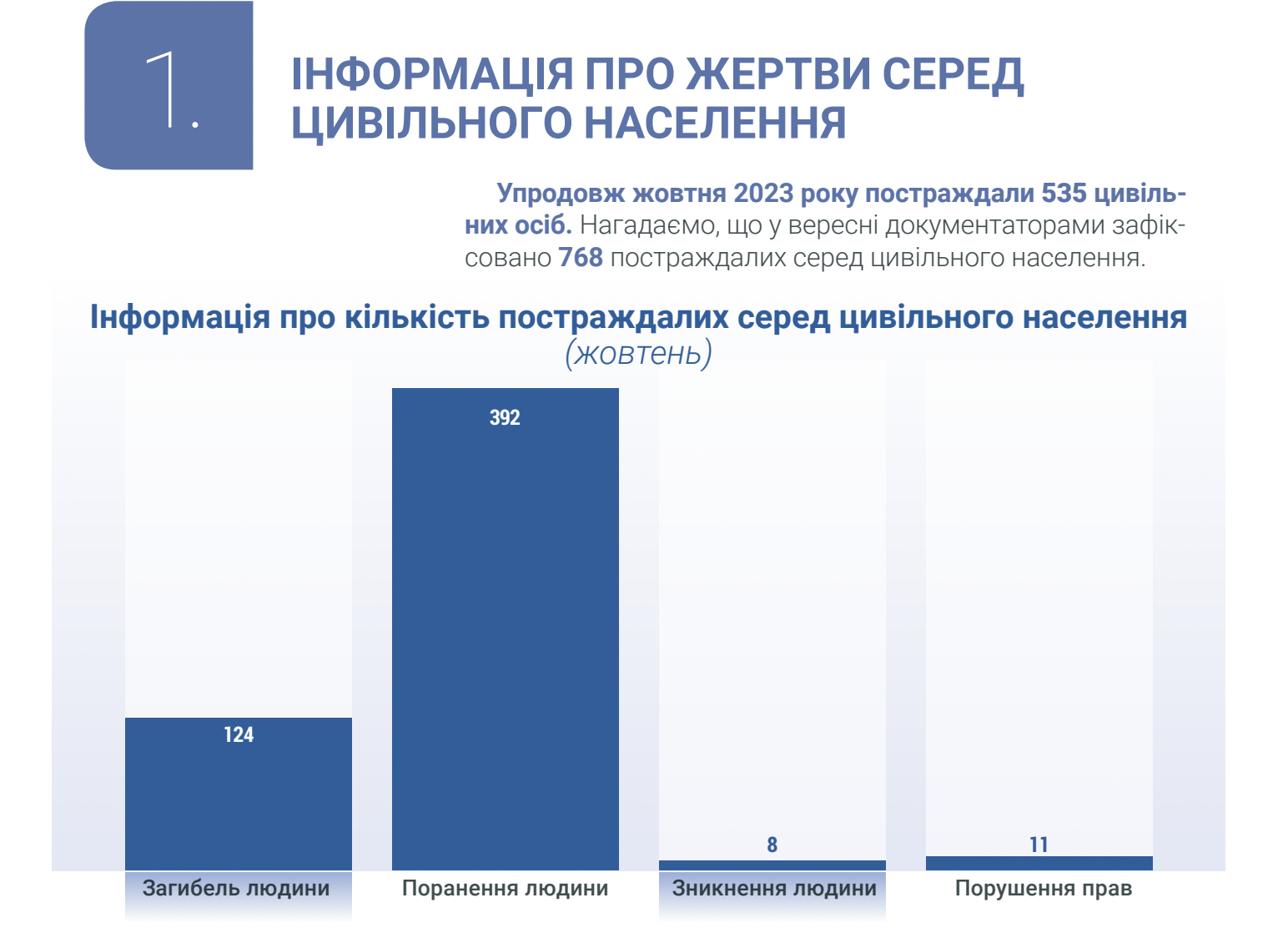 Упродовж жовтня 2023 року постраждали 535 цивільних осіб.