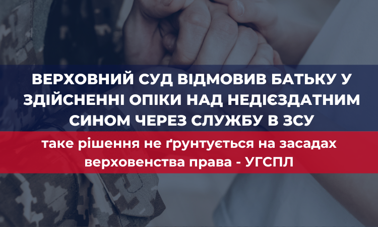 Тобто фактично Верховний Суд ухвалив рішення, яким позбавив заявника права на звільнення з військової служби для догляду за дитиною, яка має інвалідність з дитинства, обґрунтовуючи правомірність такого рішення інтересами самого недієздатного сина. Водночас, таке рішення було ухвалено попри висновок органу опіки та піклування про можливість заявника бути опікуном свого недієздатного повнолітнього сина.