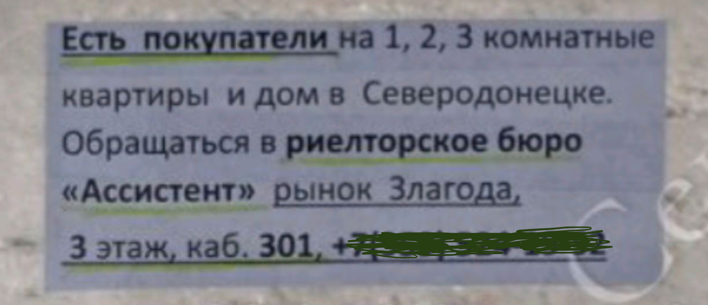 Регулярними вже стали випадки привласнення окупантами майна цивільного населення. У тимчасово окупованому Сєвєродонецьку Луганської області заповзятливі росіяни, підробляючи документи, почали торгувати квартирами городян, які виїхали з міста та ні про що не підозрюють.