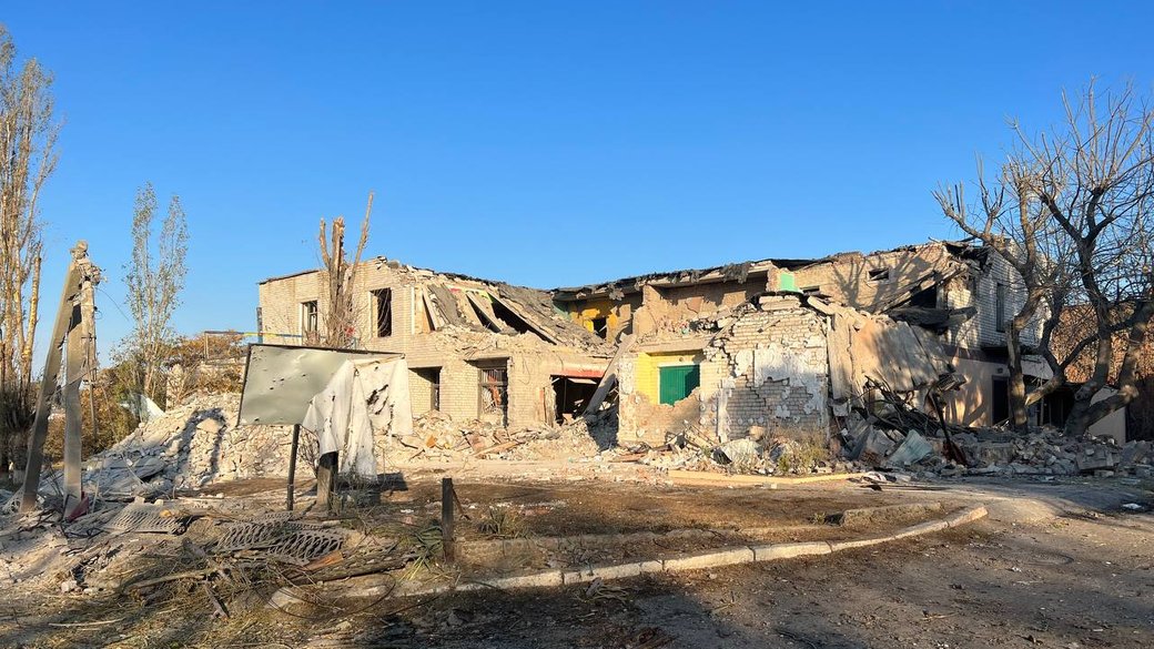 Основне фото від Міністерства внутрішніх справ України: Зруйнований ракетним ударом заклад громадського харчування у Степівській громаді Миколаївського району, 19 жовтня 2023 року.