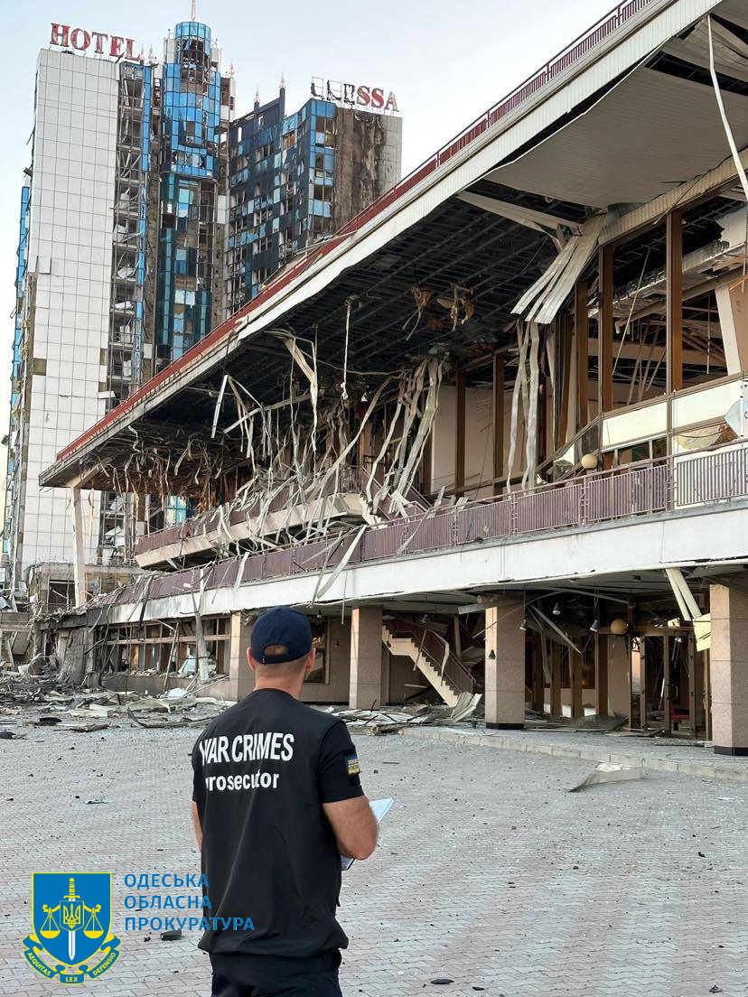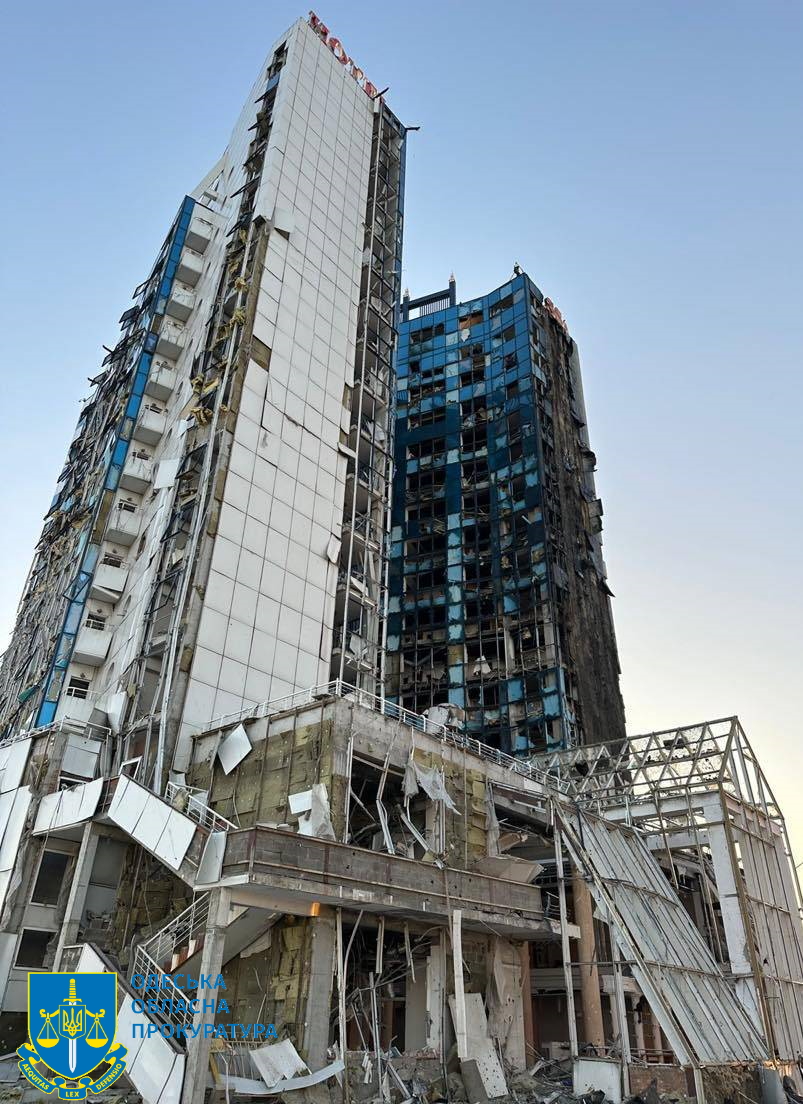 Основне фото: Андрій Ставніцер/Facebook. Пошкоджені після обстрілу 25 вересня 2023 року будівлі одеського морського вокзалу та готелю «Кемпінські – Одеса».