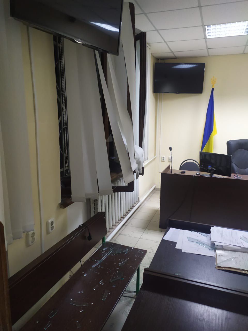 Також унаслідок падіння уламків БПЛА та детонації вибуховою хвилею пошкоджено два об’єкти системи правосуддя.