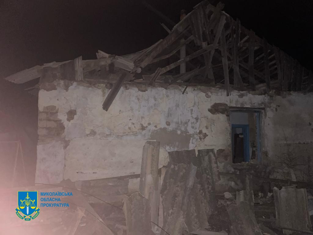 За останній місяць також зафіксовано епізоди пошкодження цивільних об’єктів у Миколаївській області внаслідок влучання БпЛА або їх уламків: 4 січня 2024 року збройні сили рф здійснили повітряну атаку населених пунктів Горохівської громади Баштанського району Миколаївської області ударними БпЛА. Внаслідок атаки пошкоджено ангари з агропродукцією на території агропідприємств, приватні житлові будинки, дитячий садок та сільський будинок культури. Вночі 2 січня 2024 року у м. Миколаєві під час бойової роботи сил протиповітряної оборони, уламки збитого БпЛА типу «Shahed-131/136» спричинили пожежу гаражів. Рятувальники ДСНС ліквідували загоряння на площі 70 квадратних метрів.