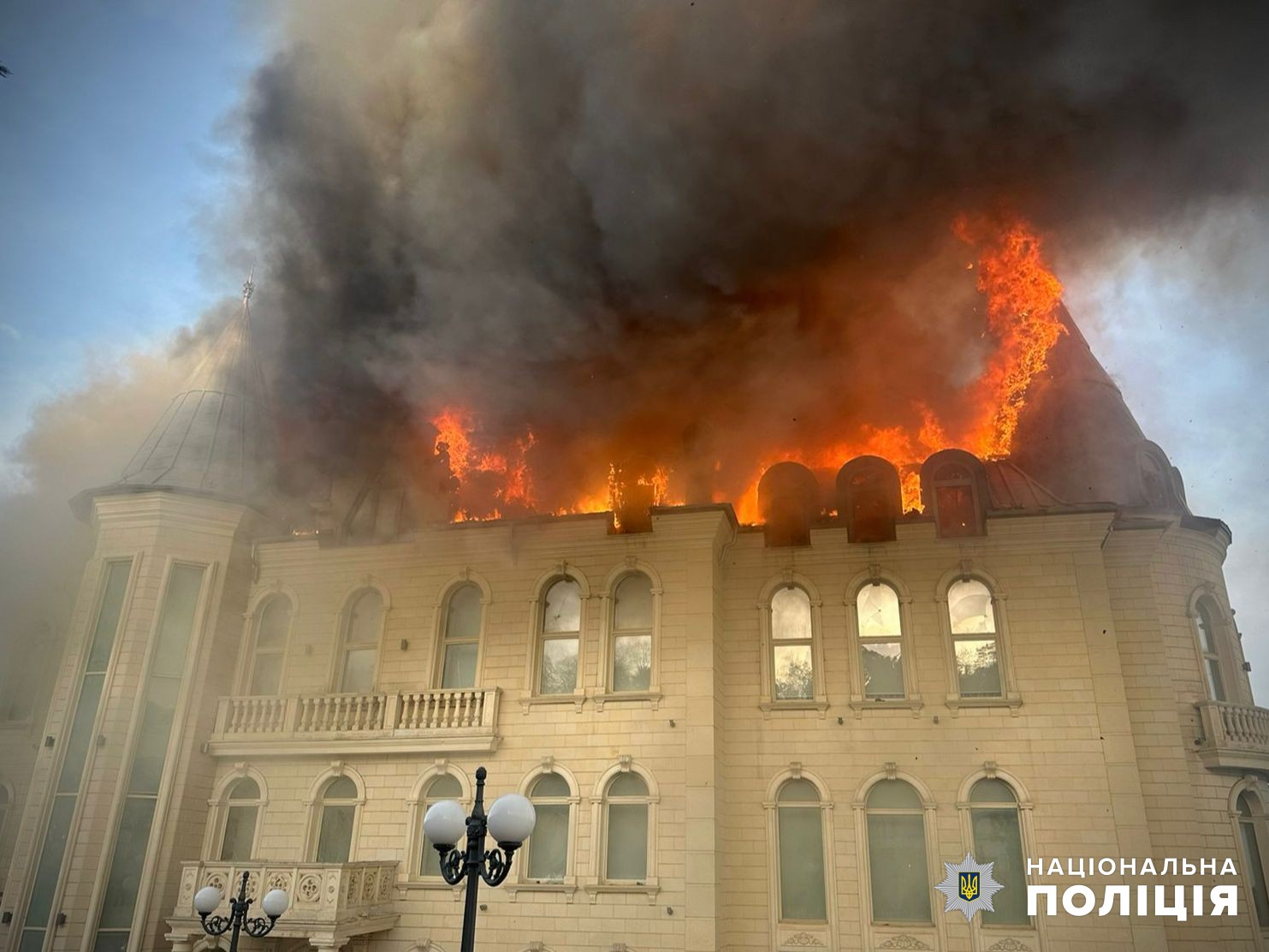 Основне фото: Пошкоджений внаслідок ракетного удару по місту Одесі 29 квітня 2024 року Палац студентів Одеської юридичної академії (відомий також як «Замок Гаррі Поттера»). Фото: ДСНС Одещини