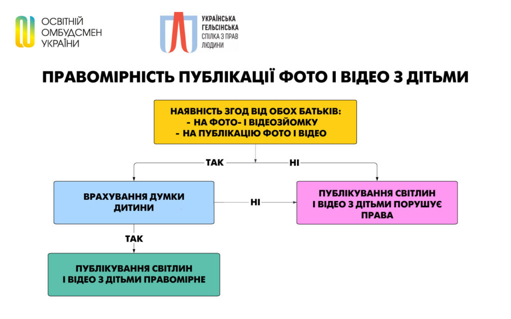 Освітній омбудсмен разом з Українською Гельсінською спілкою з прав людини підготували публікацію, яка пояснює, за яких умов фотографування та публікація фото дітей у школах є правомірними.