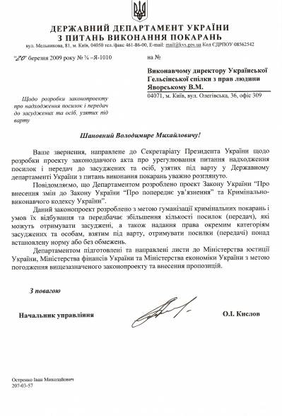 Принаймні такий висновок можна зробити, прочитавши листа, що надійшов з цієї установи на адресу УГСПЛ.
