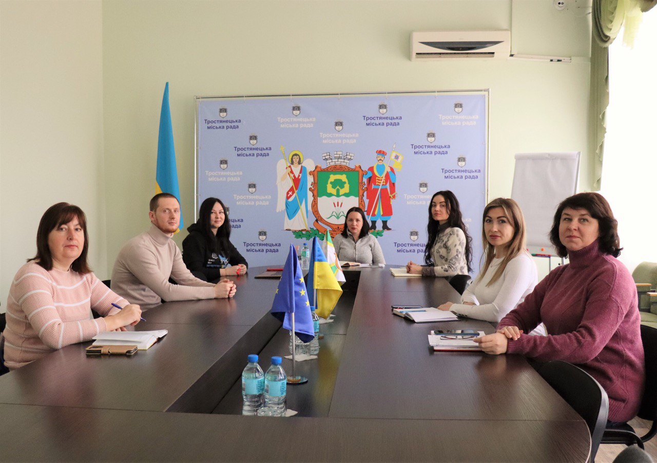 Наталія Єсіна, експертка проєкту, яка розповіла про масштабну ідею опробування оновленої методології Місцевого індексу прав людини в Тростянці Сумської області на зустрічі з фахівцями відділу соціального захисту населення, служби у справах дітей, відділу правового забезпечення Тростянецької міської ради.