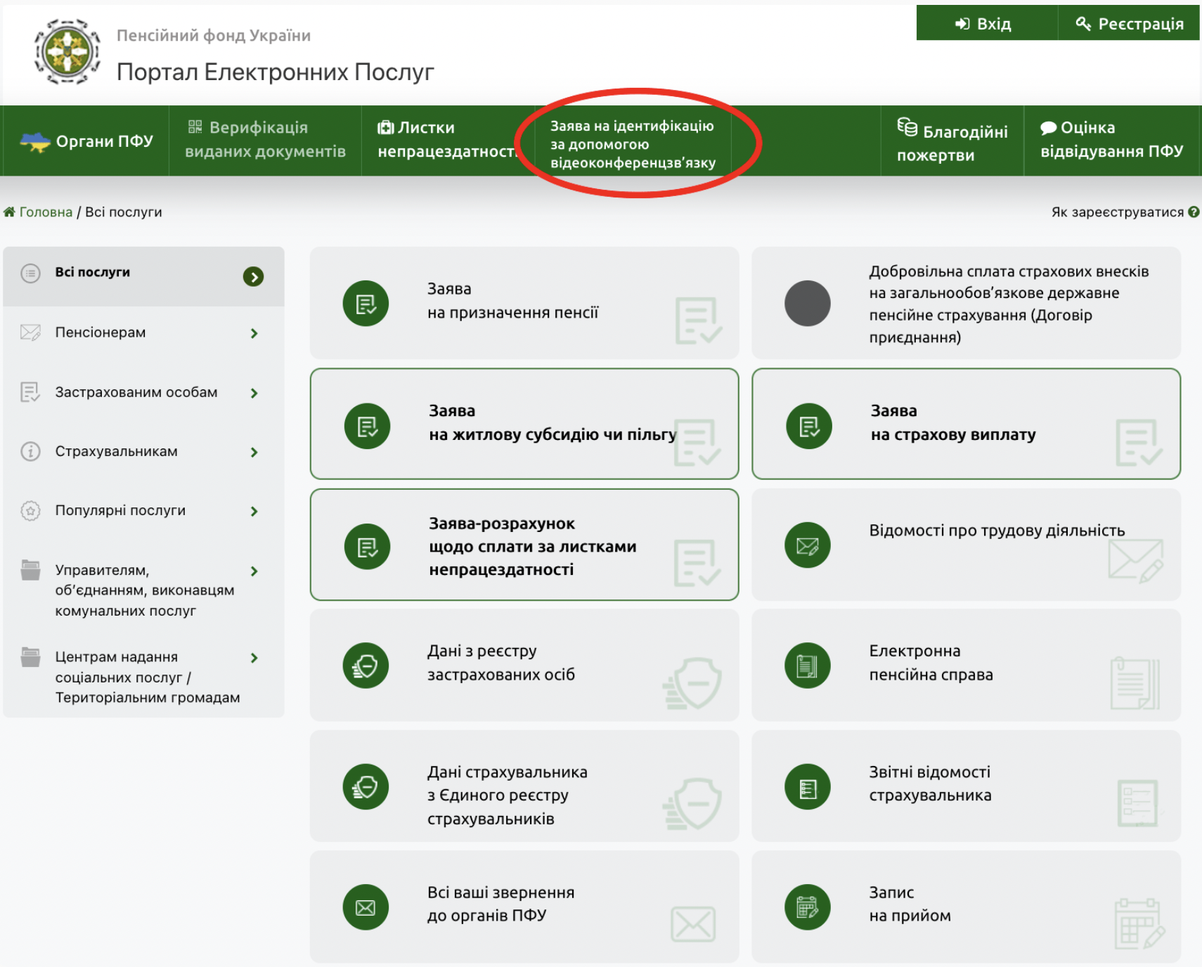 - Пройти відеоідентифікацію на Порталі електронних послуг ПФУ.