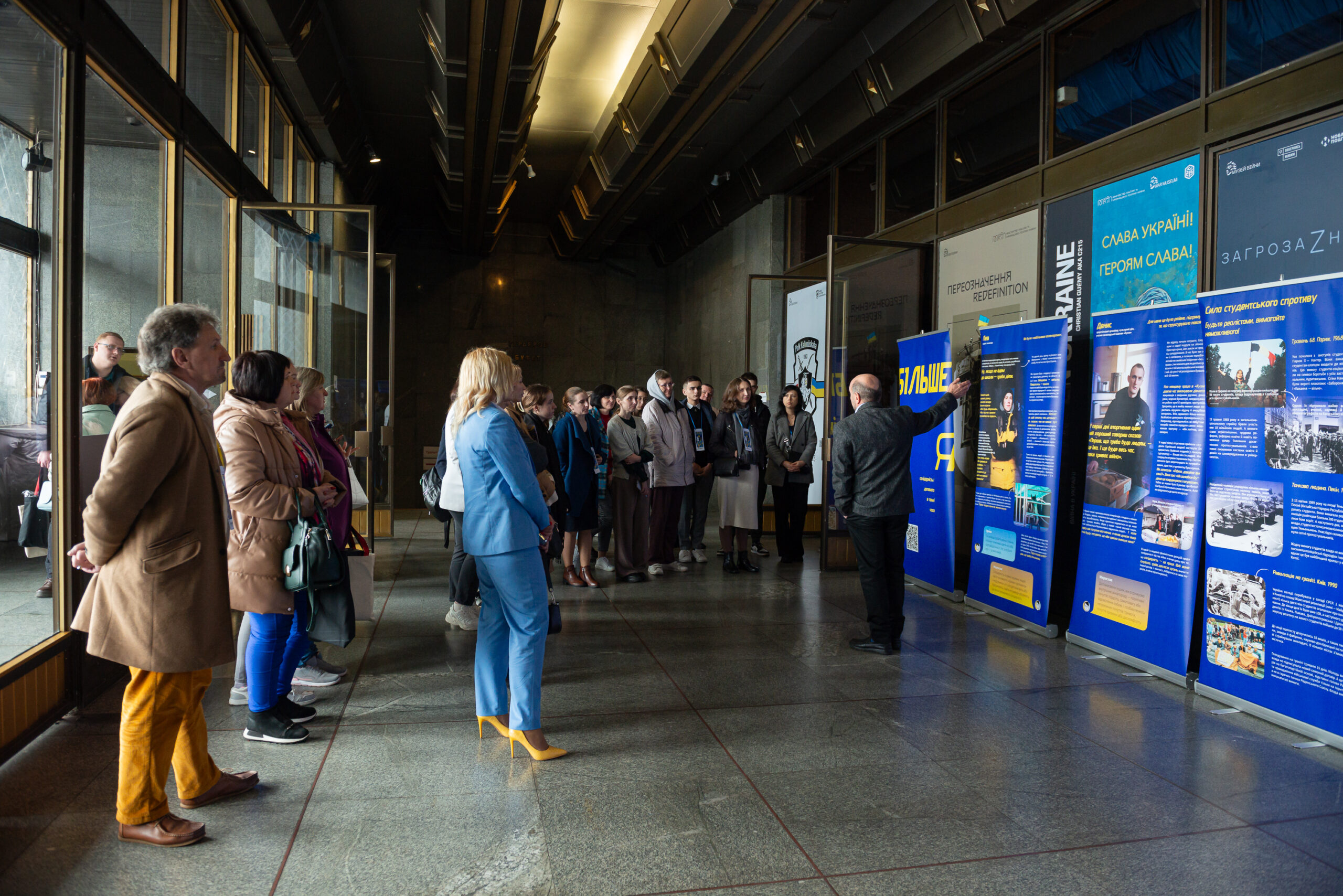 По завершенню нагородження вчителів один з членів журі, освітянин Олександр Войтенко провів для учасників екскурсію виставкою «Більше, ніж я: солідарність і допомога в темні часи».