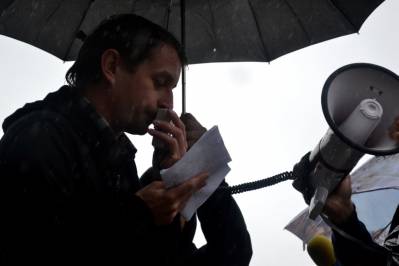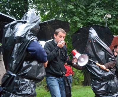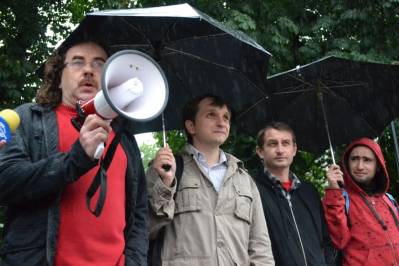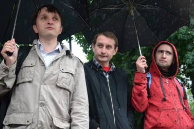 Напередодні Дня Конституції під стінами Верховної Ради письменники та правозахисники провели літературну акцію проти закону «Про захист суспільної моралі». Незважаючи на важкі погодні умови, на боротьбу із цензурою вийшли письменники Сергій Жадан та Андрій Кокотюха, а також ключові фігури правозахисного руху Володимир Яворський, Володимир Чемерис та Костянтин Рєуцький.