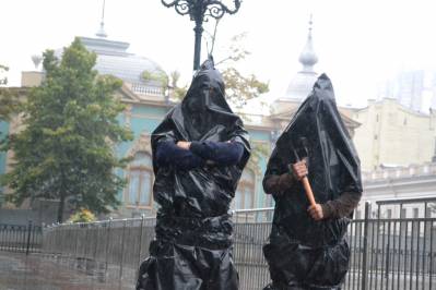Активісти Громадської кампанії проти встановлення цензури ЗМІ та творів мистецтва, що спеціально приїхали на акцію з різних регіонів України, виступили з вимогою оскаржити конституційність норм Закону «Про захист суспільної моралі». Біля стін Українського Парламенту були розгорнуті транспаранти з гаслами «ЗА СВОБОДУ вираження ПОГЛЯДІВ!» і «НІ ганебному закону про захист суспільної моралі!». За огорожею грізно вишикувалися люди в чорних балахонах з прорізами для очей, уособлюючи нову українську інквізицію, що викликало нарікання з боку правоохоронних органів.