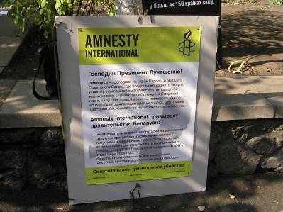 Акція за скасування смертної кари пройшла сьогодні під посольством Білорусі. Її організатором виступила Міжнародна громадська організація Amnesty International. Захід чомусь змусив нервувати ся працівників посольства.