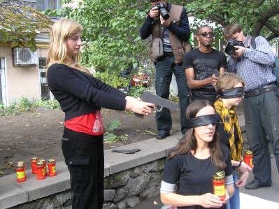 Дівчата з зав’язаними очима символізують жертв смертної кари