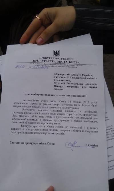 Ми наполегливо закликаємо Вас цього разу провести ретельне, неупереджене та повне розслідування факту смерті Ігоря Індила.