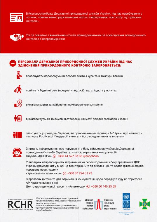 Українська Гельсінська спілка з прав людини та Держприкордонслужба розробили та впровадили пам’ятку щодо повноважень, прав та обов’язків для прикордонників та громадян, які перетинають адміністративну межу з тимчасово окупованою територією АР Крим.