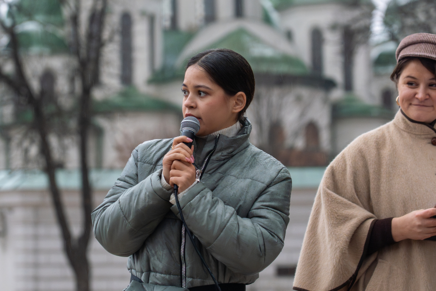 Під час акції хвилиною мовчання згадали тих українців, чиї життя забрала війна Росії проти України. Перед цим учасники заходу згадали українську журналістку та правозахисницю Вікторію Рощину, яку закатували у російській неволі.