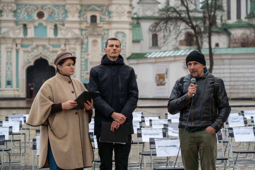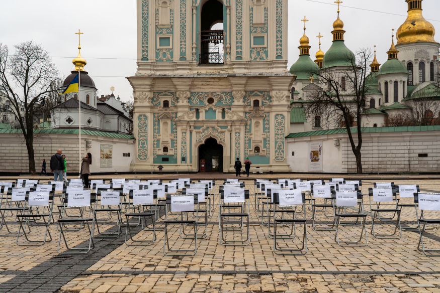 У Києві провели акцію «Порожні стільці» на підтримку незаконно ув’язнених, полонених та зниклих безвісти журналістів та митців