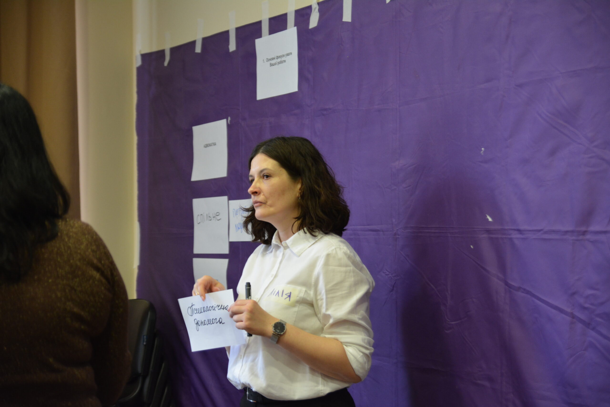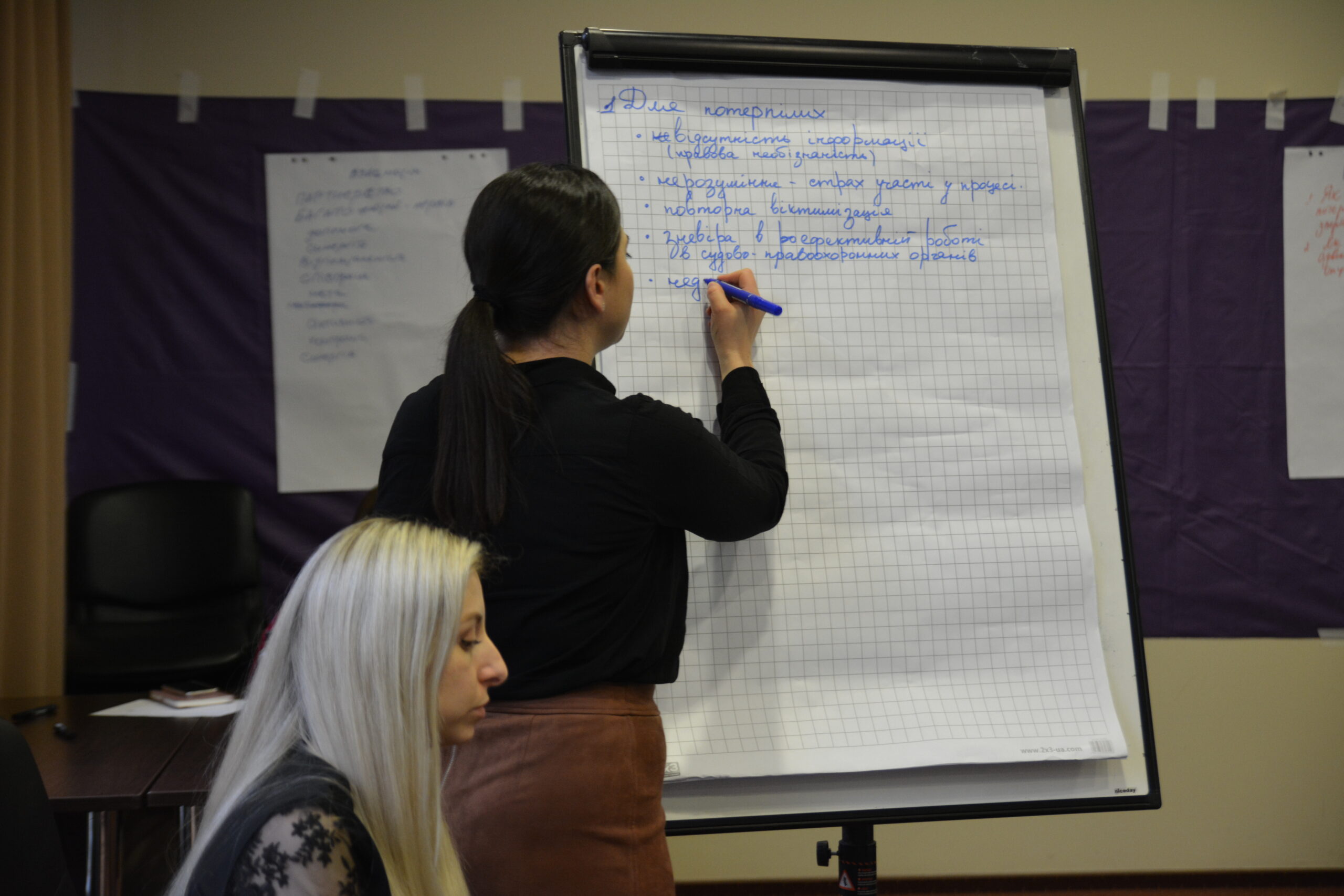 Протягом дня учасники працювали у малих групах, щоб знайти точки дотику обох інституцій та обмінятися практичними інструментами роботи з потерпілими від воєнних злочинів.