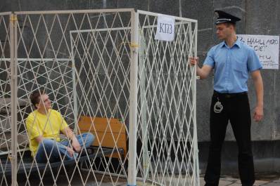 У Києві молоді активісти влаштували театралізовану виставу прямо на Площі Знань, біля Національного технічного університету України «КПІ». У центрі вони облаштували камери символічного СІЗО. До них поміщали студентів, які не знають свої права і не здатні захиститись від розлючених міліціонерів, силою відправляли їх за грати. Там, у СІЗО, активісти пояснювали студентам їх права та роздавали інформаційні картки. «Це смішно, проте нам доводиться вчитися захищати себе від правоохоронних органів. Якщо працівники міліції не пам’ятають про те, що потрібно дотримуватися прав людини та своїх обов’язків – ми повинні їм про це нагадати», – коментує ситуацію координатор акції в Києві Роман Шмалько.