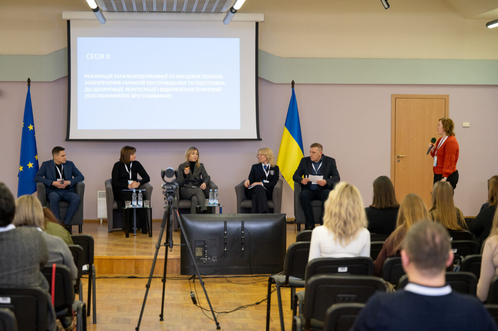 Перша сесія була присвячена формуванню загальнодержавної та місцевих політик забезпечення гарантій постраждалих осіб і постконфліктного врегулювання, з акцентом на плануванні стратегій і заходів реінтеграції вже нині.