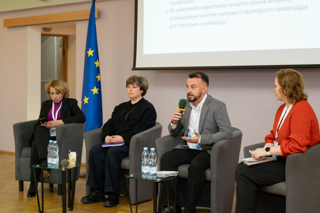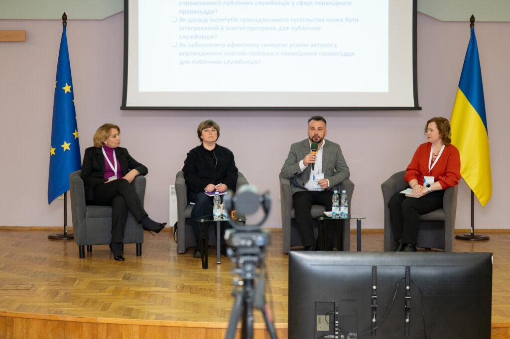 Важливим акцентом виступу стала роль публічної служби у впровадженні підходів перехідного правосуддя. Саме публічні службовці формують політики, ухвалюють управлінські рішення і щодня взаємодіють із постраждалими людьми — у громадах, ЦНАПах, соціальних службах, адміністраціях.