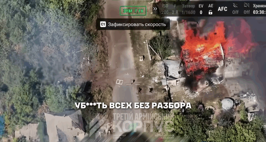 Воєнний злочин зафіксували у прямому ефірі підрозділи Третього армійського корпусу. Перехоплення розмов російських військових підтверджують: дії противника були заздалегідь сплановані. Це ще один приклад систематичного використання мирних жителів як живих щитів — практики, забороненої міжнародним гуманітарним правом і кваліфікованої як воєнний злочин.