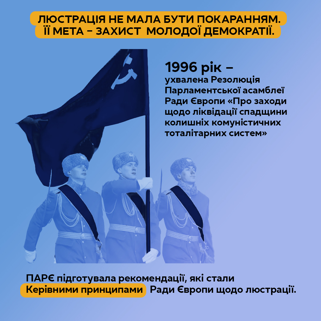 Саме у той історичний період, у 1996 році, була ухвалена Резолюція Парламентської асамблеї Ради Європи «Про заходи щодо ліквідації спадщини колишніх комуністичних тоталітарних систем» (Резолюція 1096).