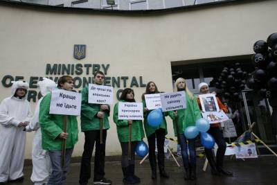 Транспарант з такою вимогою 2 грудня перегороджував вхід до будинку Мінприроди України, демонструючи незгоду громадських природоохоронних організацій з офіційною позицією України на переговорах ООН зі зміни клімату, які розпочинаються 7 грудня.
