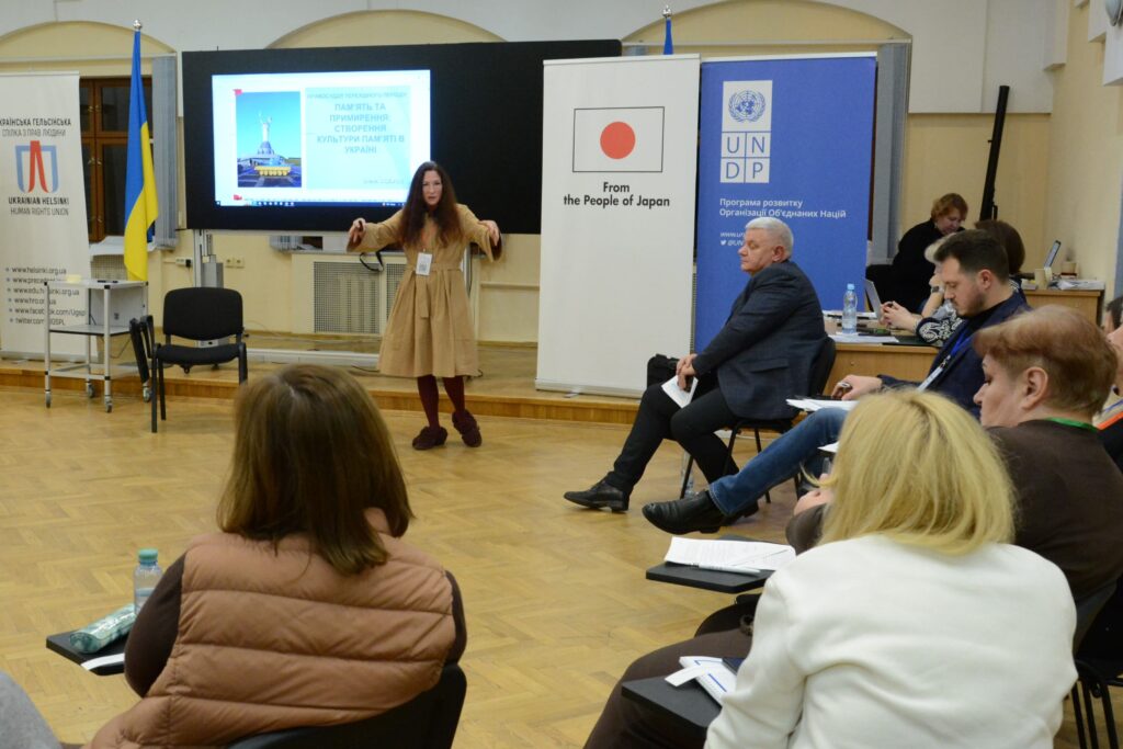 Олена Охрімчук, начальниця Управління реалізації політики національної пам’яті в регіонах Українського інституту національної пам’яті, присвятила свій блок меморіалізації як складнику перехідного правосуддя. Експертка наголосила на важливості обережного підходу: помилки в увічненні пам’яті можуть провокувати конфлікти в громадах замість примирення.