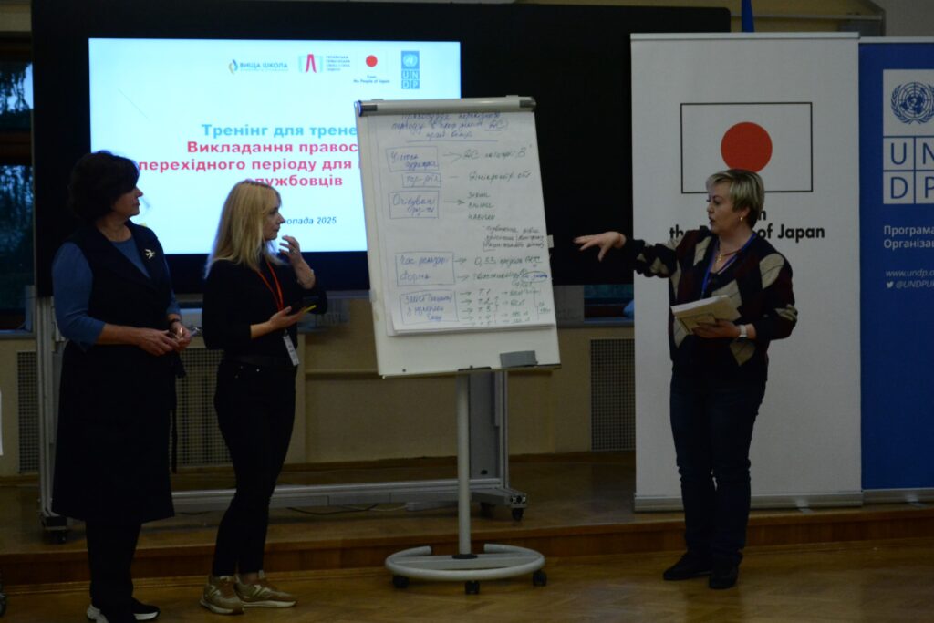 24 фахівці і фахівчині з різних регіонів три дні навчалися передавати знання й навички, необхідні публічним службовцям у період відновлення після війни. Серія цих тренінгів продовжує системну роботу, щоб тема перехідного правосуддя стала частиною державної політики та щоденної роботи на місцях.
