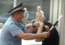 Очнулся я в другом помещении на обыске. Обыск проходил с избиением. После этого застегнули наручники за спиной и прогнали через строй с дубинками. Снова потерял сознание. Очнулся в автозаке, там уже было около 20-ти заключенных. Все были избиты, окровавлены, многие без обуви и раздеты. У меня была разорвана фуфайка и ботинки.