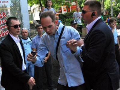 Невідомі затримали Касьянова біля супермаркету БУМ під час спроби знімати на мобільний телефон в'їзд кортежу губернатора.