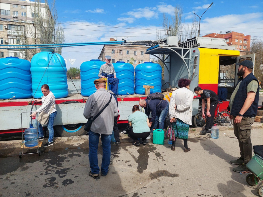Нестача питної води у Миколаєві створила загрозливу гуманітарну кризу. За оцінкою ЮНІСЕФ, це могло призвести до серйозних гуманітарних наслідків та спалаху важких інфекційних захворювань, що передаються через воду. У групі ризику перебували, зокрема, сім’ї з дітьми, які потребують якісної води для пиття, приготування їжі та санітарних потреб. Для забезпечення питною водою в місті облаштували десятки пунктів видачі. Для зручності створили он-лайн мапу з їх місцезнаходженням (безоплатні та платні точки). Їх облаштували у лікарнях, церквах, на базі комунальних об’єктів. Щодня до різних куточків міста приїжджали вантажівки, тролейбуси чи навіть трамваї з водою. Так, трамвай, що розвозить воду працює з восьмої години. На кожній локації стоїть близько півтори години, поки не закінчиться вода в бочках. На початок лютого 2023 року у Миколаєві працюють 150 точок безкоштовної видачі питної води, надалі міська влада планує збільшить їх кількість до 250.