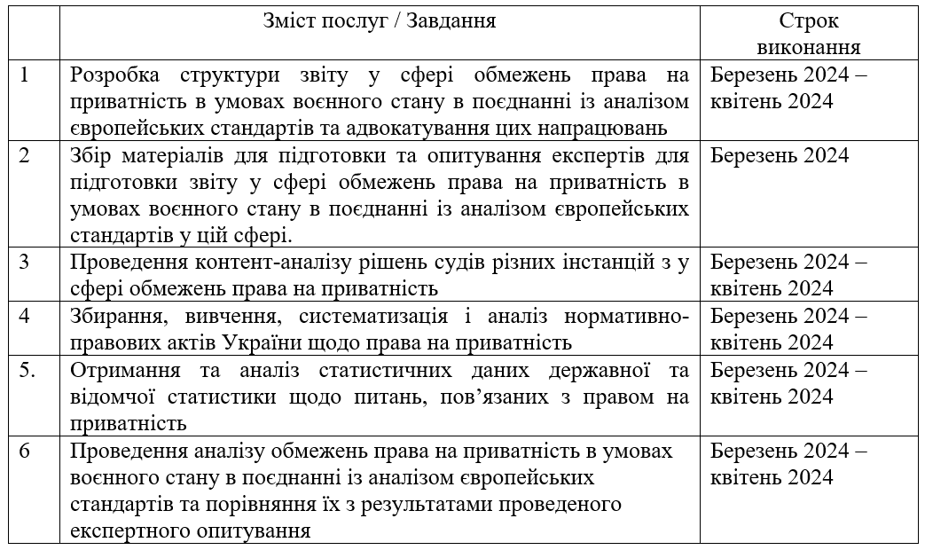 Конкурсний відбір експерта/експертів на здійснення дослідження у сфері обмежень права на приватність